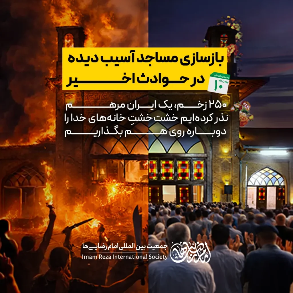 اینک، ما «امام رضاییها»، به پشتوانهٔ یک ملت، نذری مقدس کردهایم. نذر کردهایم تا آجر به آجر، ستون به ستون، این خانههای امید را دوباره برپا کنیم. میخواهیم با هر خشتی که روی هم میگذاریم، ثابت کنیم که آتش، هرگز حریف اتحاد و همدلی یک ملت نخواهد شد.